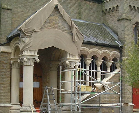 Carefully restoring ornamental stonework on listed buildings.